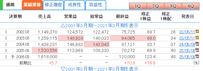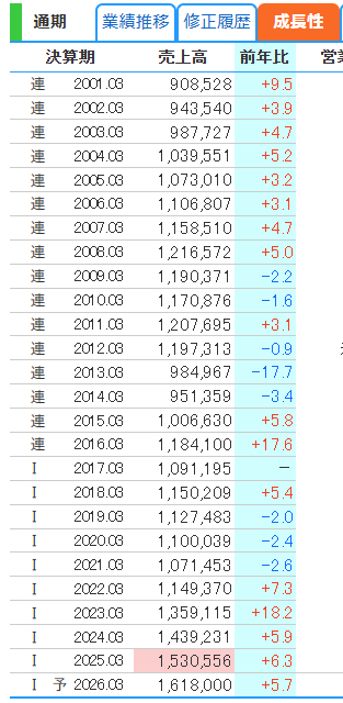 グロース株のような大きな成長はありませんが、2022年からは毎年着実に成長を続けています。