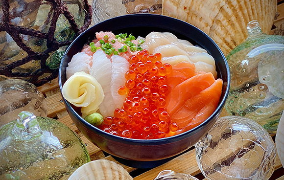 北海道と言えばやっぱり海鮮!サーモン・イクラ・ホタテ・エンガワ・ネギトロ等お好きなものを存分に盛り付けて、オリジナル海鮮丼をお楽しみできます。ホタテ片貝炙り焼きやスープカレーもあるとのこと。