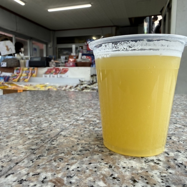 そして完成したのがこちら。初めて飲んでみましたが本当に砂糖の味がしっかりして、さとうきびを目の前で絞っているからこそ感じられる貴重な体験込みで美味しかったです。