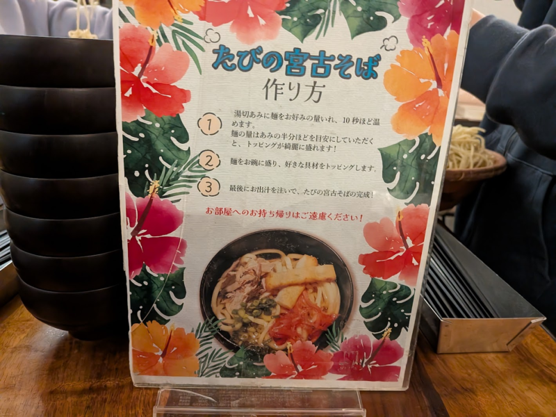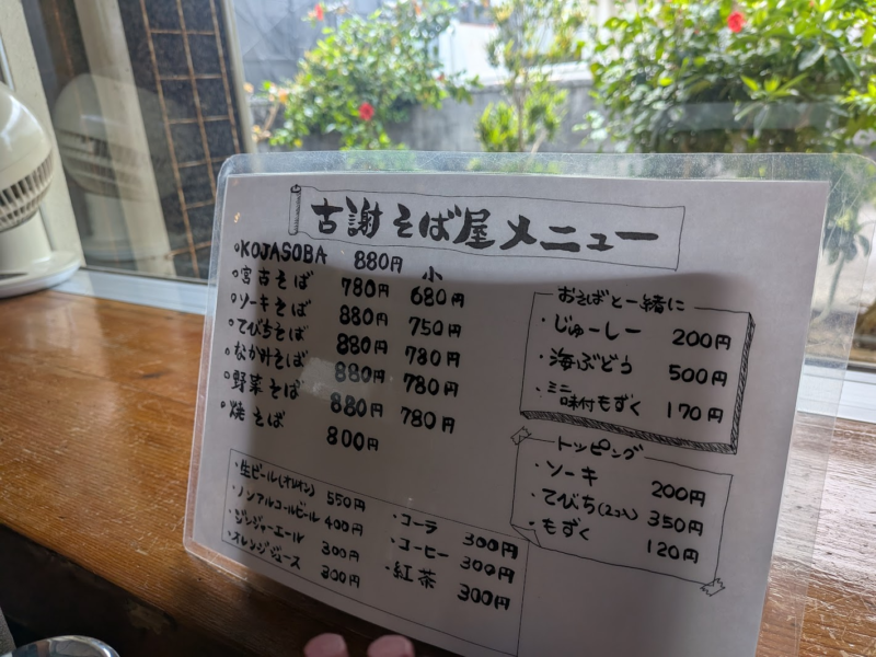 メニューはシンプルで小サイズもありました。私たちは古謝そばと宮古そばを一つずつ頼みました。