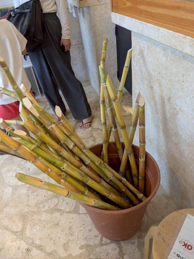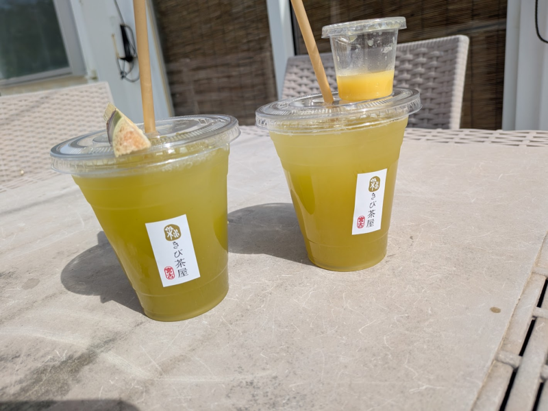 おやつ時に島の北のほうに行きました。そして池間大橋の手前にある「宮古きび茶屋」でさとうきびジュースをいただきました。