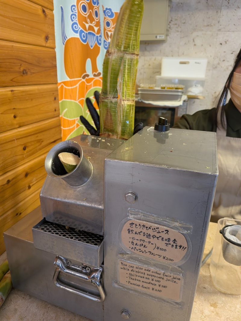 ここのお店の目玉はなんといっても、自分でサトウキビを搾り機に突っ込んで作る「さとうきびジュース」です。それを体験すべく行ってきました。