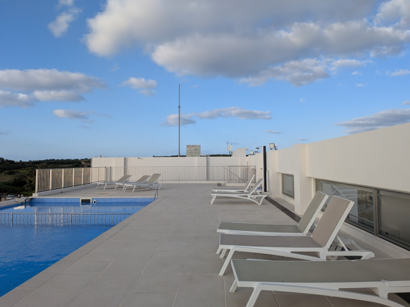 屋上にはプールもあって、せっかくなので一瞬だけ入りました。