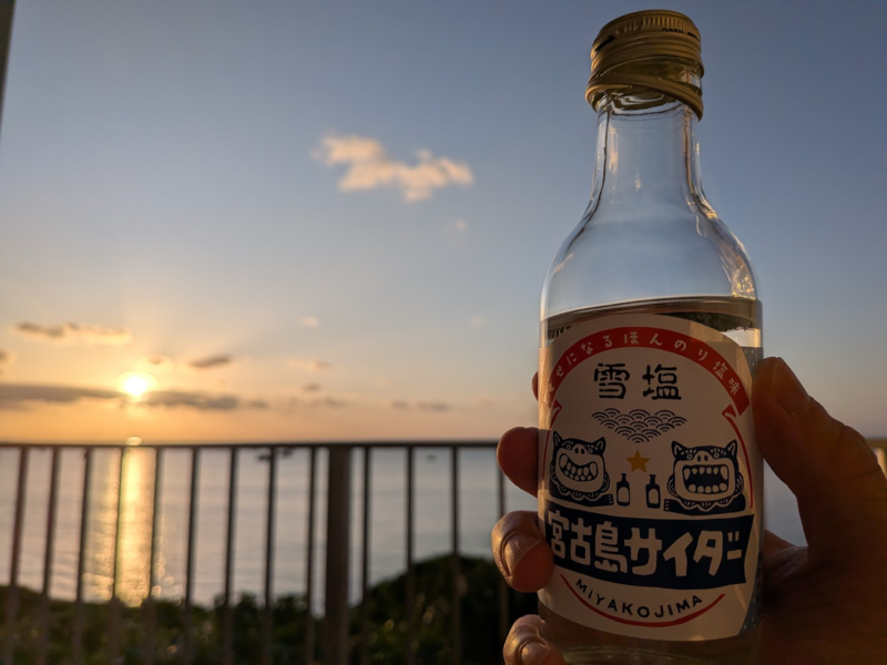 宮古島サイダーを片手に。