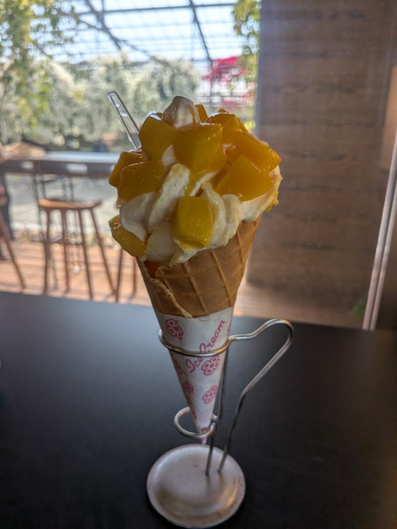 マンゴープリンとマンゴーソフトを食べました。マンゴーたっぷりでとてもおいしかったです。