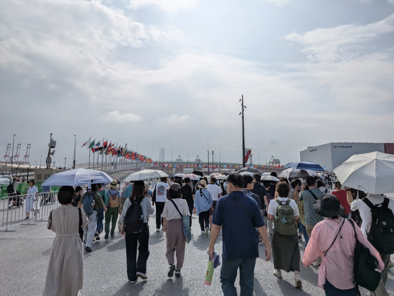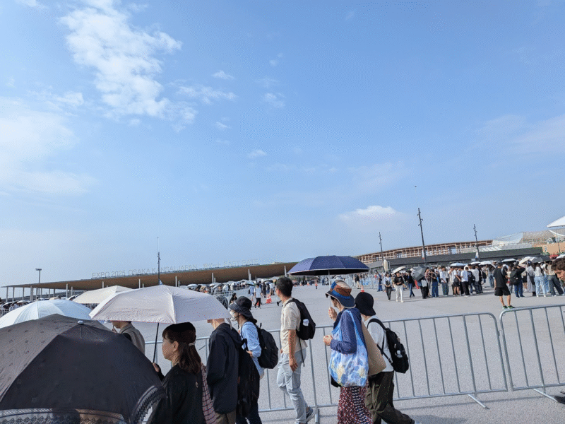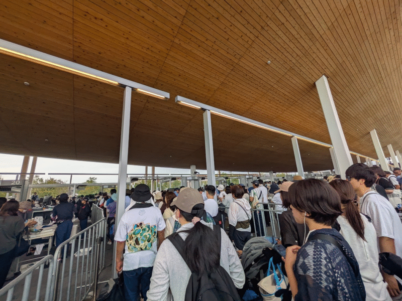 前述したように開園と同時の枠はすでに埋まってしまっており、11時からの枠(東ゲート)での入場でした。会場の夢洲駅に9時半ごろ到着。大量の人と一緒にゲートに向かいました。