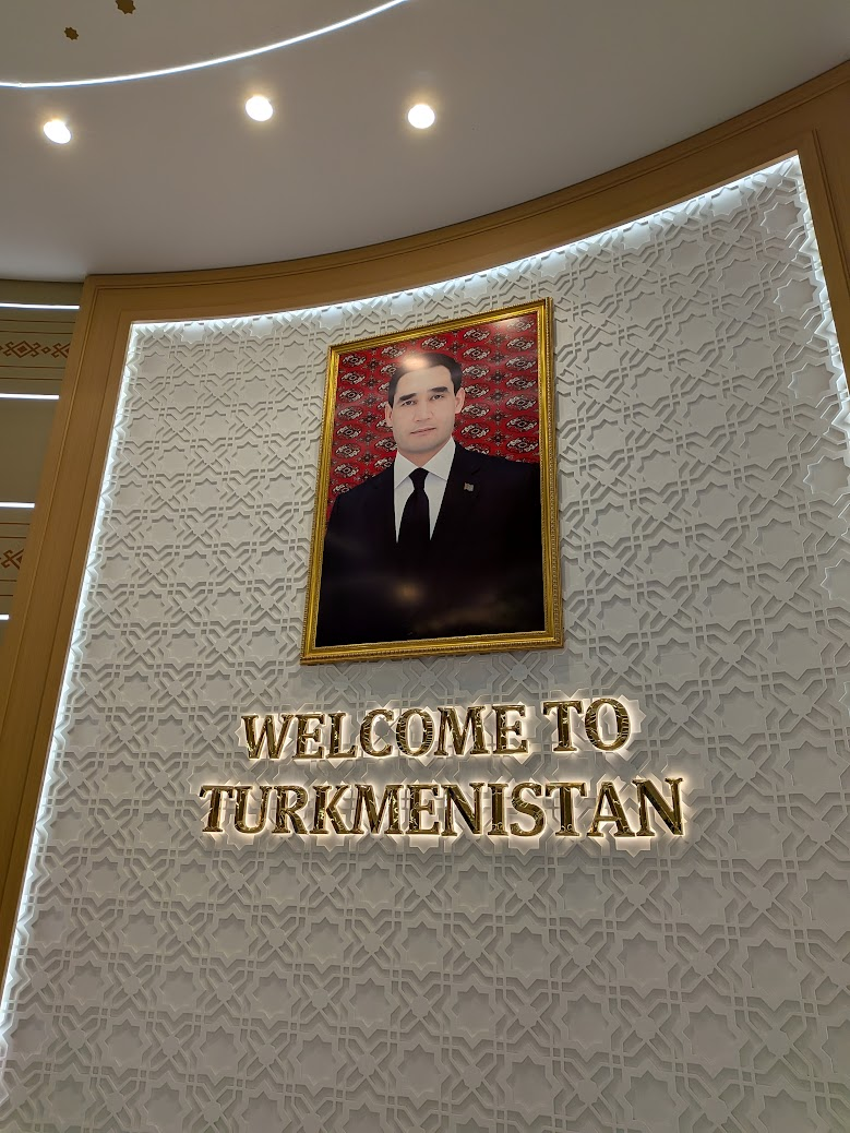 トルクメニスタンの現大統領の肖像画が私たちを待ち構える。何とも言えない雰囲気。
